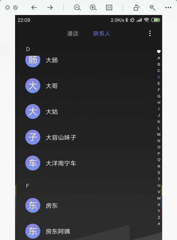 确认导入结果:导入完成后返回联系人列表,上下滑动即可查看已导入的联系人。