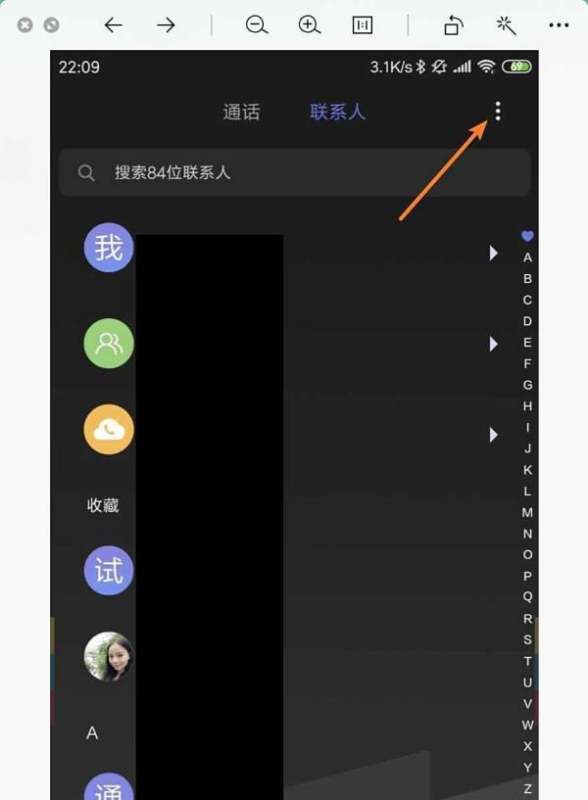 打开菜单选项:点击联系人界面右上角的功能按钮(通常为三个点或齿轮图标)。