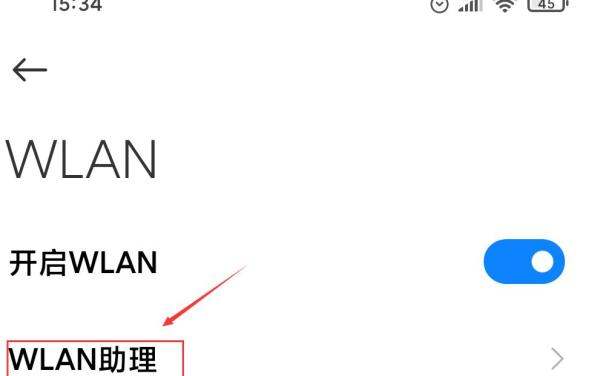 开启WLAN助理在WLAN设置页面中,找到并点击【WLAN助理】选项,进入网络辅助管理界面。