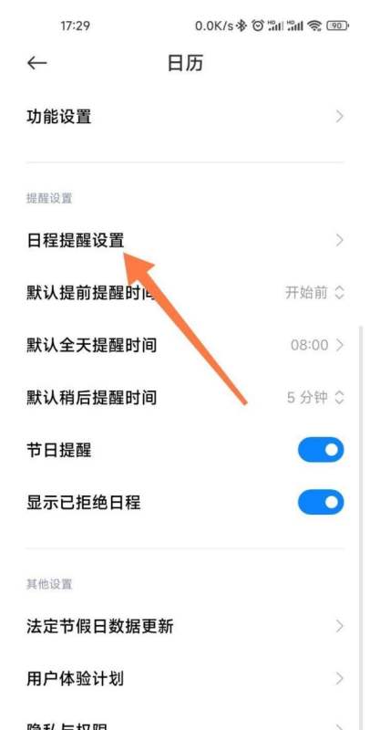 定位日程提醒设置在设置页面中,找到并点击【日程提醒设置】选项,进入提醒方式配置界面。