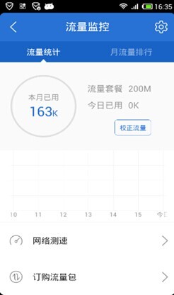 3.【流量套餐/开始日】设置完成后,即可在流量监控首页监控到您的流量使用情况,同时还可看到当前使用网络的实时网速。