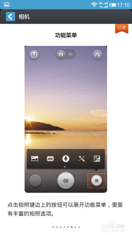 2、长按菜单键进入相机设置。