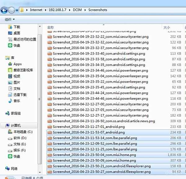7、进入screenshots截屏图片文件夹,所有的截图都在这里面,不过由于不能查看缩略图所以只能以文件名来判定,文件名是以日期时间来命名的,所以也比较容易看到。