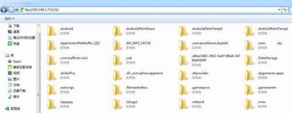 4、返回到电脑上,在我的电脑上打开资源管理器,在地址栏输入上面这个FTP的地址,然后回车就可以。等一下就会把手机上文件夹全部列出来。