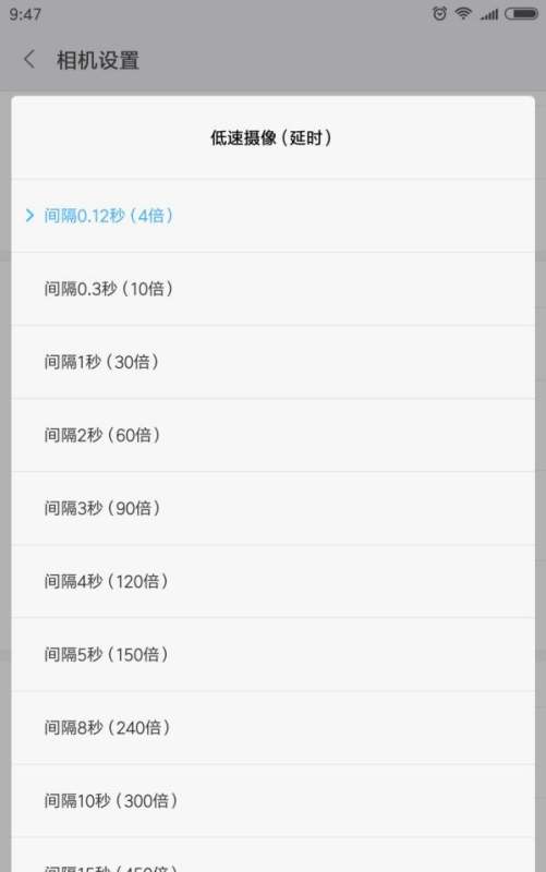 调整时间参数:点击低速摄像(延时)选项,可设置时间压缩效果,默认选项通常适用。