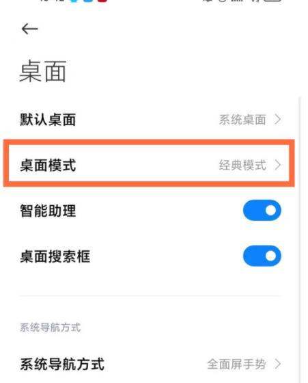 在桌面设置界面中,找到“桌面模式”选项并点击。此选项用于控制桌面的交互逻辑和功能显示。