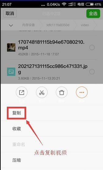 4、将要转发的小视频复制/粘贴到sdcard0/Tencent/MicroMsg/最长后缀名称文件夹/draft,