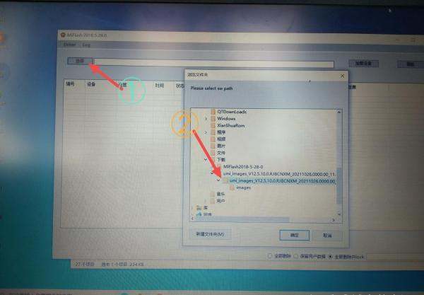 在线刷工具中,找到【选择】选项,选择解压后的线刷包文件夹路径。注意,必须选择解压线刷包目录的下一个目录的文件路径。