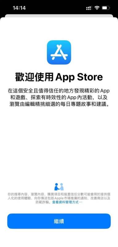 登录App Store:此时登录手机App Store后台,页面提示繁体中文欢迎信息,接下来即可搜索下载想要的香港银行或香港券商app。