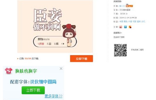 值得注意的是,搜狗输入法皮肤下载中心也提供了相应的字体下载,比如用户下载安装“臣妾做不到”皮肤之后,搜狗输入法会提醒用户是否下载配穿烟庆星套字体。如果你喜欢系统提供的字体,选择下载安装即可。