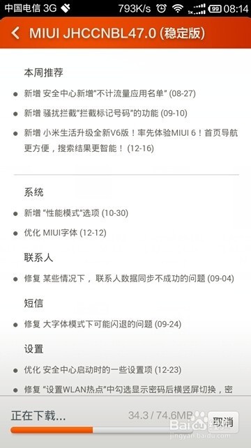 下载安装包系统自动开始下载新版本安装包,下载过程中可点击“取消”终止操作。
