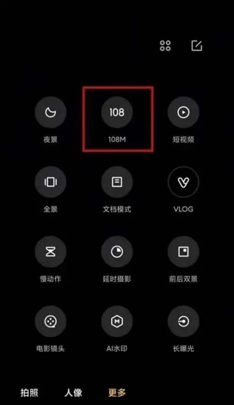 开启一亿像素模式:在弹出的更多拍摄模式选项中,找到【108M】选项,点击它即可开启一亿像素拍照模式。开启后,相机将使用一亿像素传感器进行拍摄,能够捕捉到更多的细节,拍摄出更高分辨率的照片。