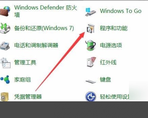2、其次,在打开的控制面板窗口中,找到并单击“程序和功能”图标,如下图所示。