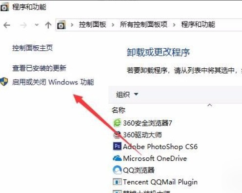 3、接着,完成上述步骤后, 单击左侧栏中的“搭桐启用或关闭 Windows 功能”菜单项,如下图所示。