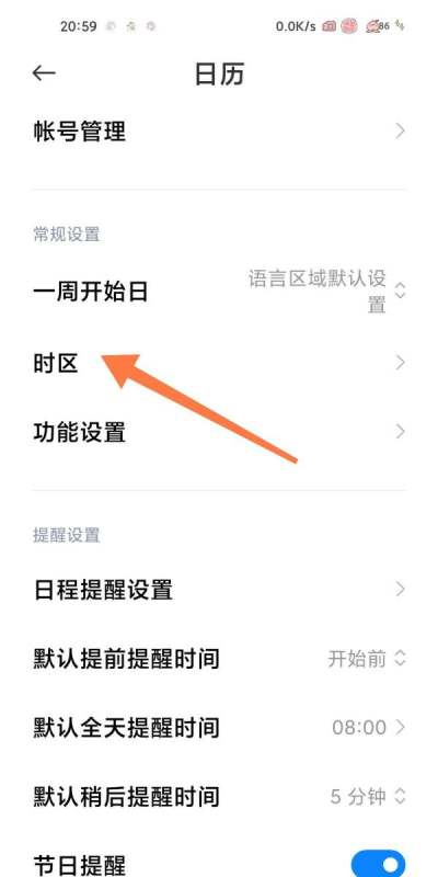 进入时区设置在设置列表中找到“时区”选项,点击进入时区管理界面。
