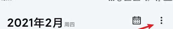 进入日历设置入口在日历界面右上角找到三个小圆点(菜单按钮),点击后弹出选项菜单。