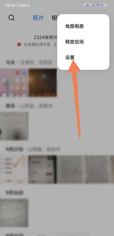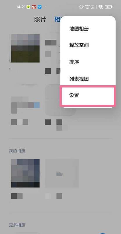 进入相册设置:打开手机自带的“相册”应用,点击右上角三个点()图标,在弹出的菜单中选择“设置”选项。