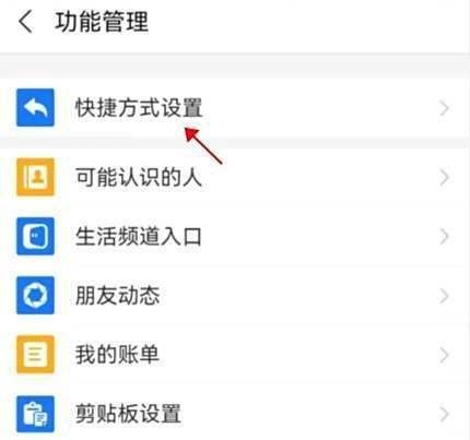 选择快捷方式设置在功能设置页面中,找到并点击「快捷方式设置」选项,进入快捷功能管理界面。