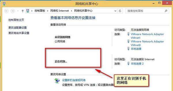 打开电脑的【网络和共享中心】,等待系统识别网络。