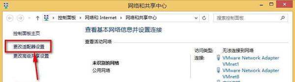 若未自动识别,点击【网络和共享中心】左边的【更改适配器设置】。