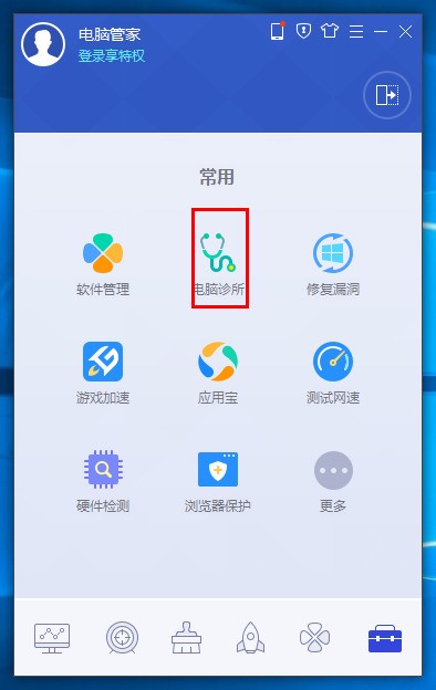 1.打开QQ管家,点击工具箱按钮,点击电脑诊所。
