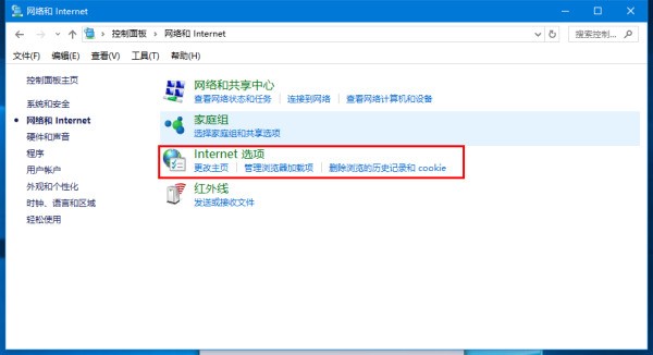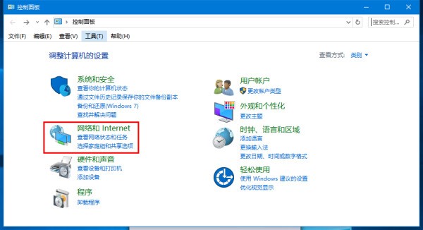 1.右键点击开始菜单打开控制面板,点击“网络和internet”。