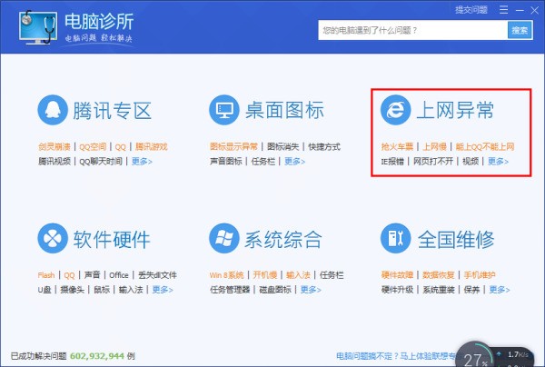 三.网络异常。可使用QQ管家进行修复,步骤如下: