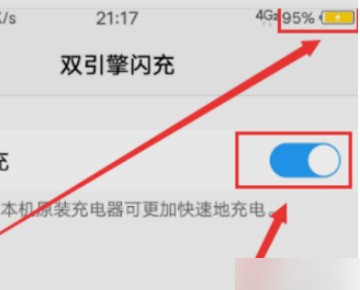 4、然后在打开的页面中,将双引擎闪充打开,如图所示。