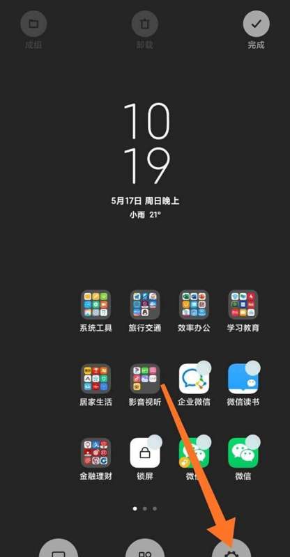进入桌面编辑模式:在手机桌面空白处,两指斜向中间滑动,触发桌面管理界面。