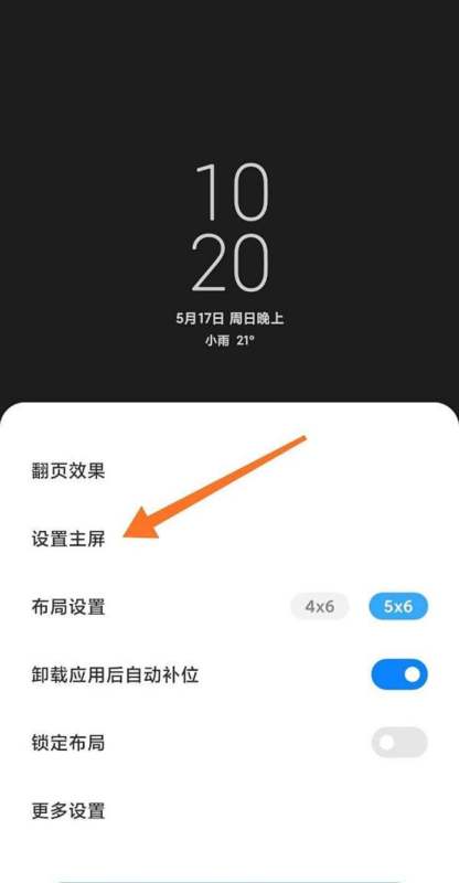 选择设置主屏:在弹出的界面中,找到并点击“设置主屏”选项。