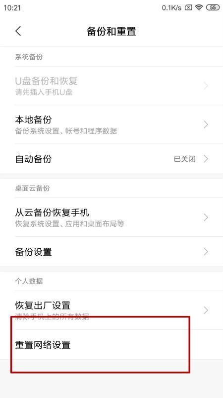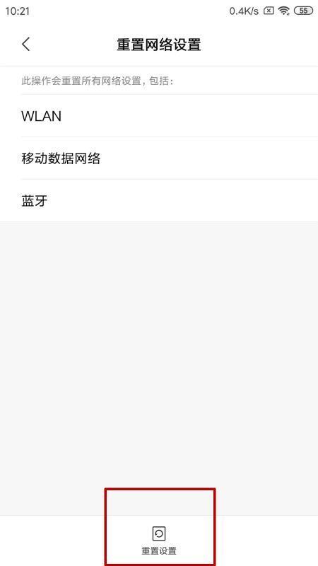 三、将手机进行网络还原设置,完成后可查看是否能连接网络。