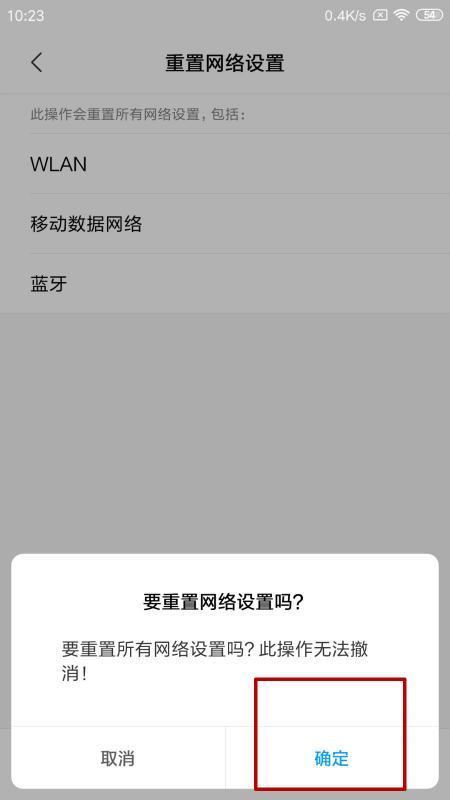 6、找到“确定”选项,点击即可重置手机网络设置。