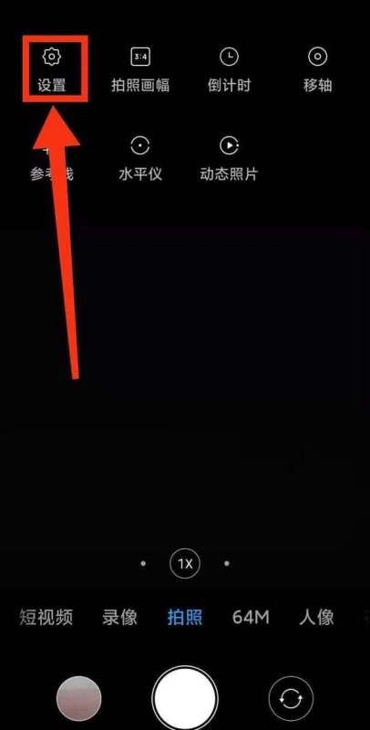 点击设置的展开标志:在相机界面中找到设置的展开标志(通常为三条横线或更多选项的图标),点击它以展开更多设置选项。