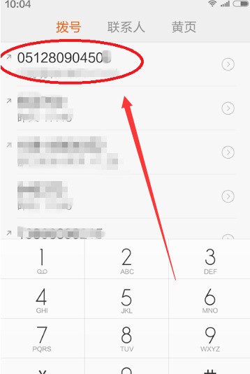 后进入通话记录界面,找到需要加入黑名单的号码并点击。