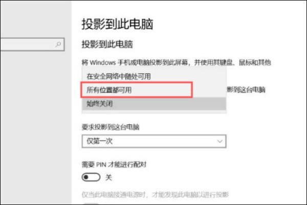 3、点击始终关闭后,会出现选择框,点击所有位置都可用。