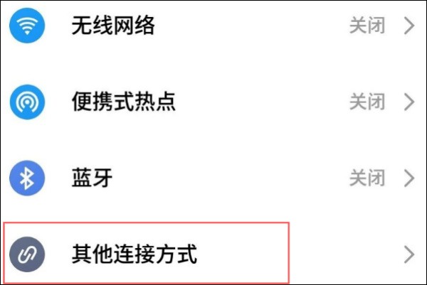 4、电脑设置完毕,打开手机设置,点击其他连接方式。