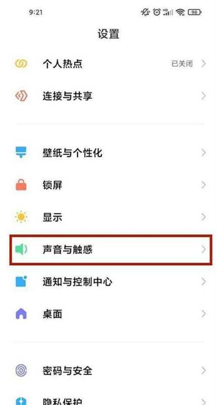 第一步:进入声音与触感设置打开手机桌面上的“设置”应用,在设置列表中找到并点击声音与触感选项。