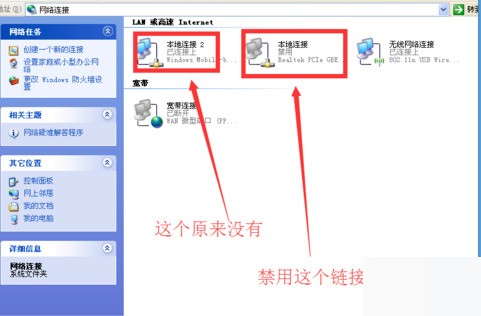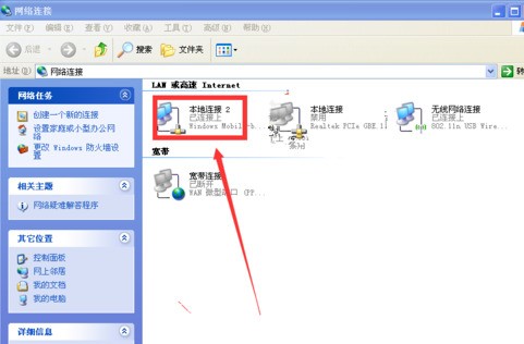 5、最后,再次查看电脑的网络连接,出现了本地连接2,说明现在台式电脑已经连接上了手机的网络,此时台式电脑就可以开始上网了: