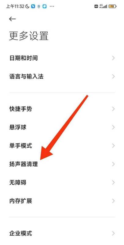 小米扬声器清灰功能在「设置」->「更多设置」->「扬声器清理」里面。