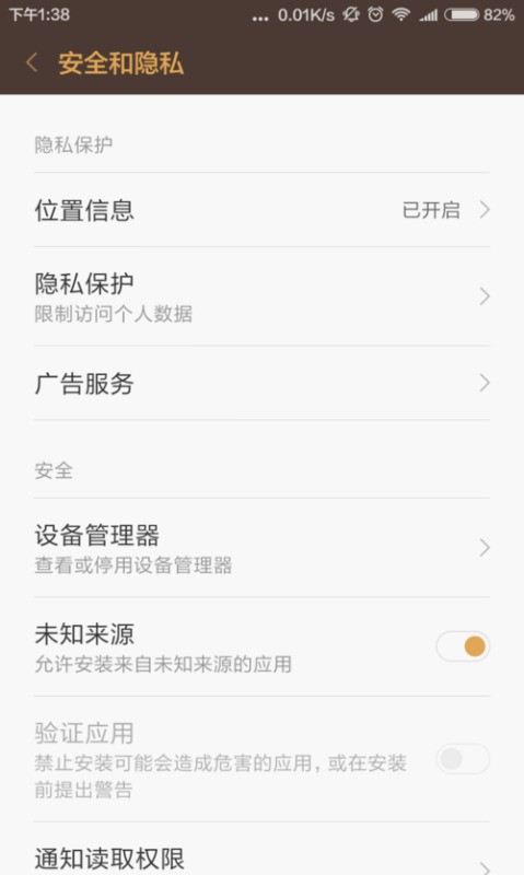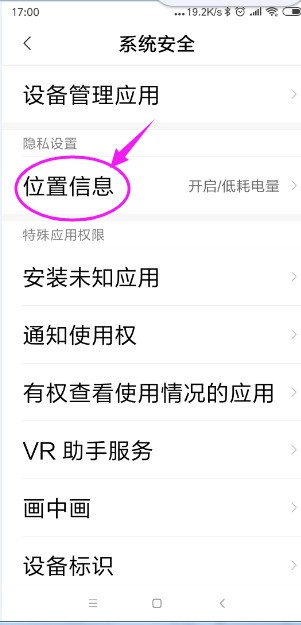 4、如图所示,在安全和隐私的命令下第一个隐私保护,位置信息,服务功能,点击可以设置服务的开启或者是关闭;