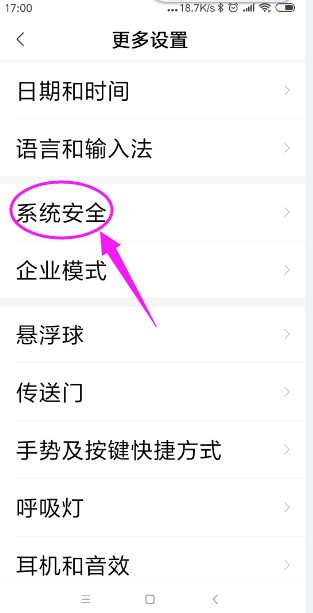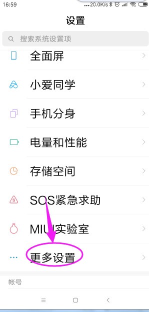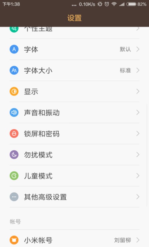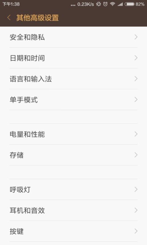 2、进入到手机的设置界面,用手指滑动一下找到其他高级设置,如图所示,第一页面基本是上手机的基础设置;