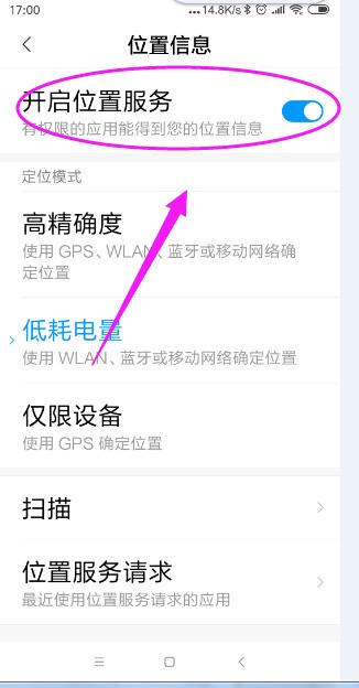 5、位置信息,服务功能,点击可以设置服务的开启或者是关闭。
