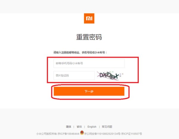 然后进入重置密码的页面,输入账号和验证码,然后点击“下一步”。
