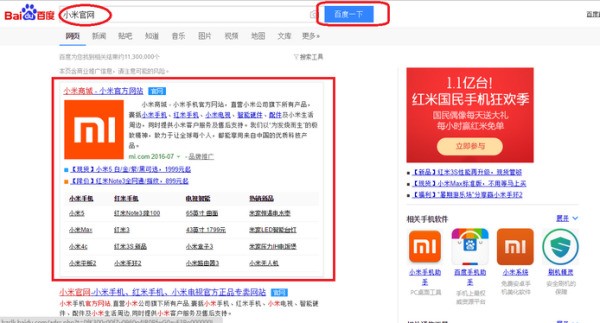 搜索小米官网,然后进入小米官方网站。