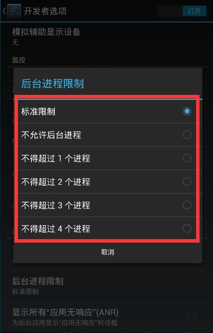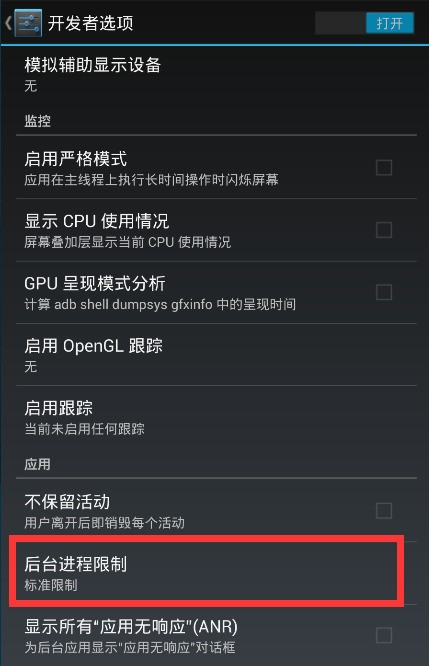 2,在里面找到限制后台进程的功能打开。