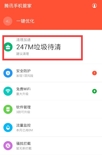 1,手机装一个手机管家,打开后点击清理加速功能。