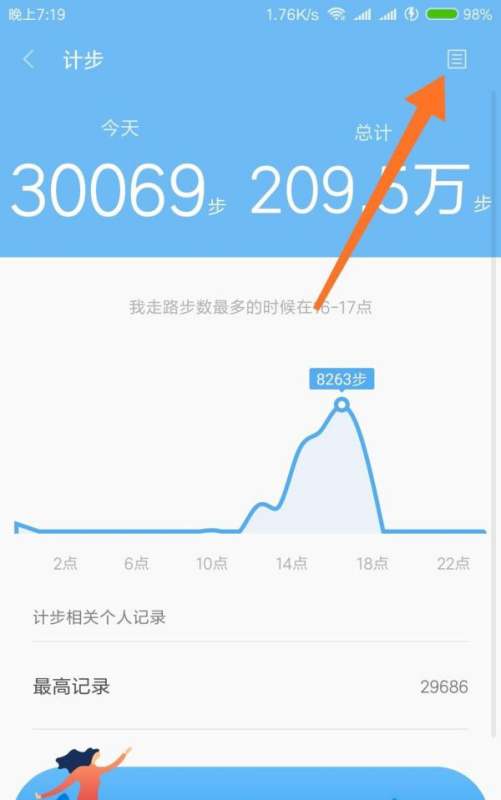 进入历史记录页面点击页面右上角的记录图标(通常为日历或列表形状),系统将跳转至步数历史记录界面。