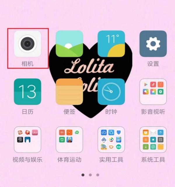 打开小米手机,在首页寻找到“相机”,点击打开。
