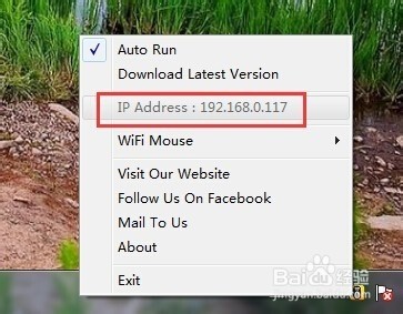 5.运行并安装电脑端“MouseSever”程序,待安装完成后,点击任务栏处的图标,此时将会得到一个IP地址,此地址将用于电脑服务器与手机建立连接。