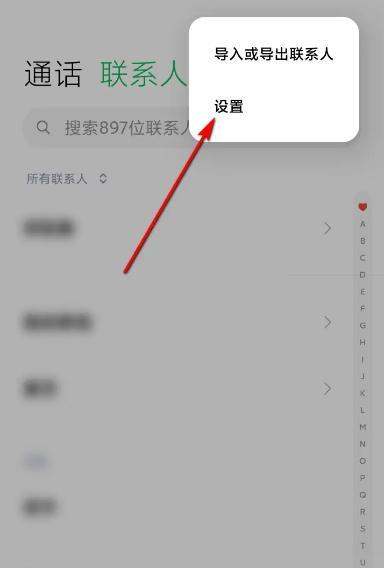 在下拉列表中,找到并点击“设置”选项,进入联系人设置页面。